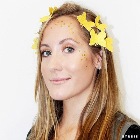 Filtro Snapchat de mariposas, uno de los más usados y para disfraz, en el maquillaje es de los más sencillos ya que puedes elegir los tonos que quieras para maquillarte, te recomendamos rojos quemados y cafés, así como los labios. Hazte un buen contour, porque este filtro siempre mejora las facciones, puedes añadir glitter dorado en algunas partes para hacerlo más parecido.